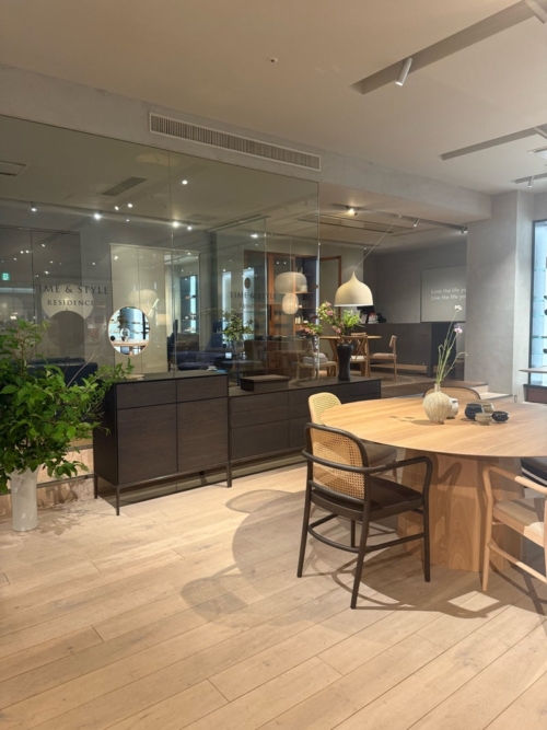 家具照明テーブルウェアなど、上質な国産ブランド。贅沢なフロアに美しくディスプレイされています。