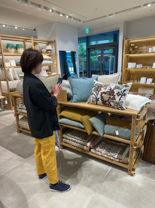 テーブルウェア、ベッドリネン、キッチン雑貨が豊富なザラホーム。クッションの組み合わせが気になってるみたい!