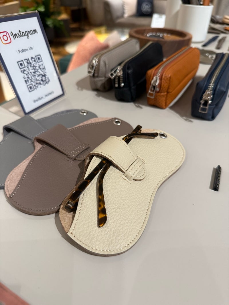 参加者様のお一人が購入された、レザーを再利用して作られたサングラスケース。素敵❤︎
