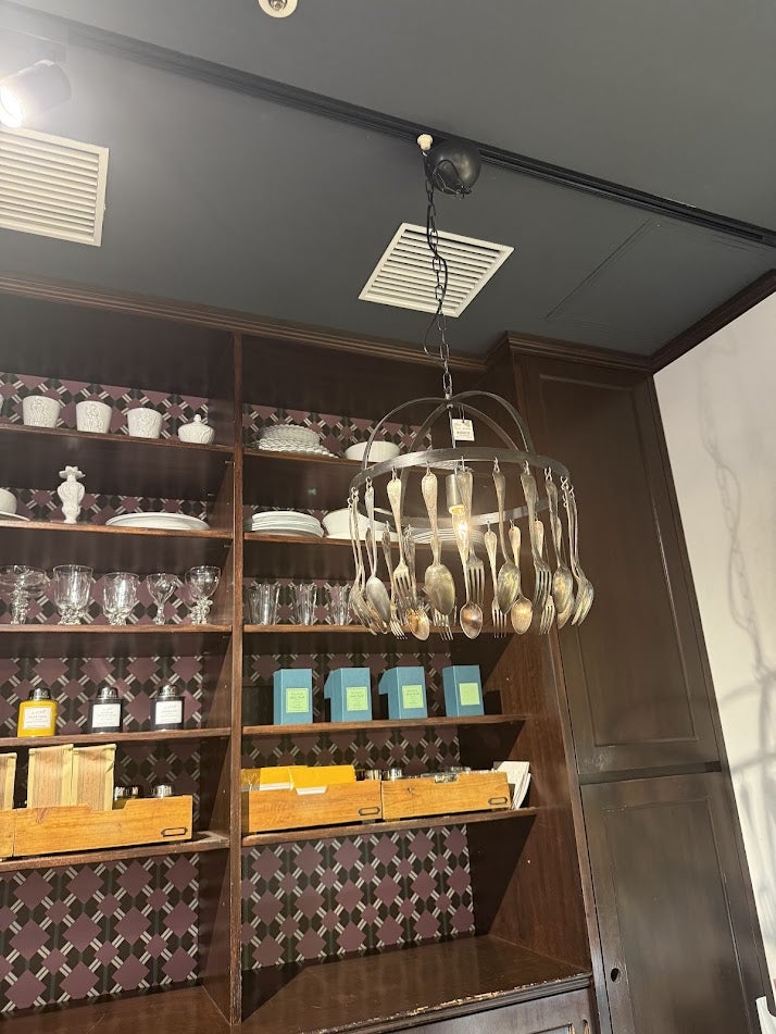 フォークとナイフが吊り下がった、ユニークなペンダント照明