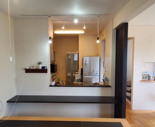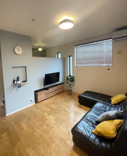 壁天井クロスを部分的に貼り替え、照明、小物アイテムをプラス。家具の配置も変えました。