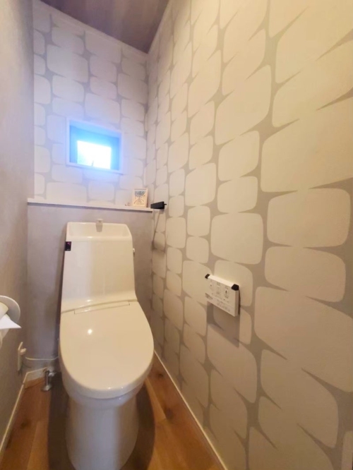 北欧風の1階トイレ。狭い空間だからこそ、壁紙は楽しんで。