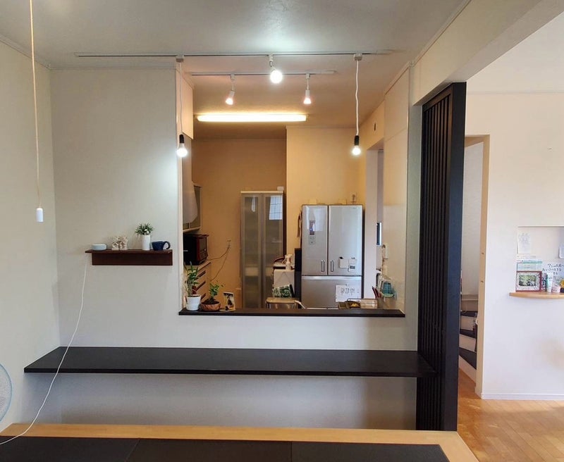 リビングを少しでも広く、使いやすくするため、テレビの場所を変え、壁つけにしました。
