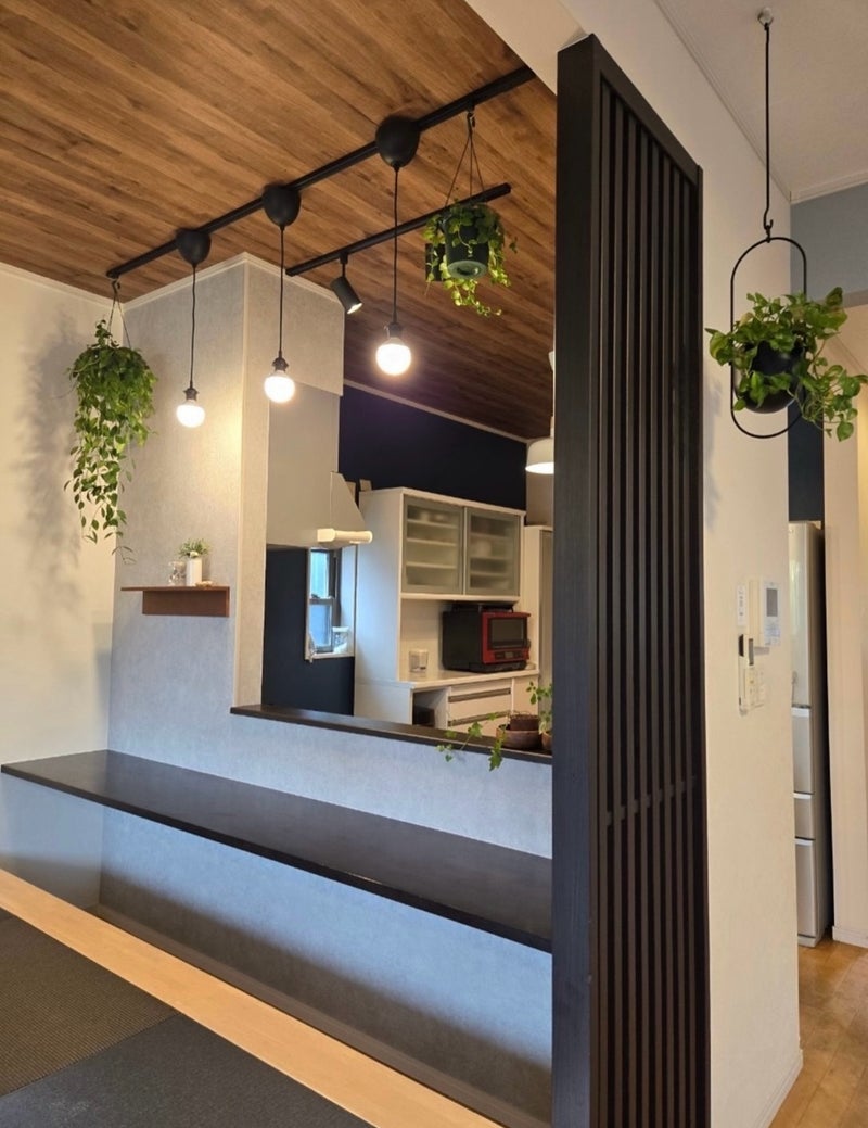 壁天井クロスを部分的に貼り替え、照明、小物アイテムをプラス。家具の配置も変えました。